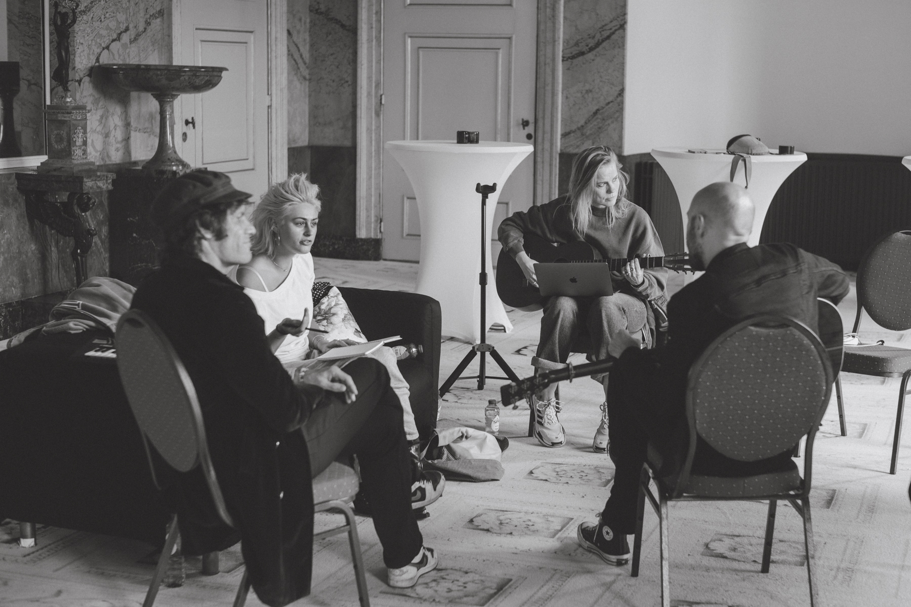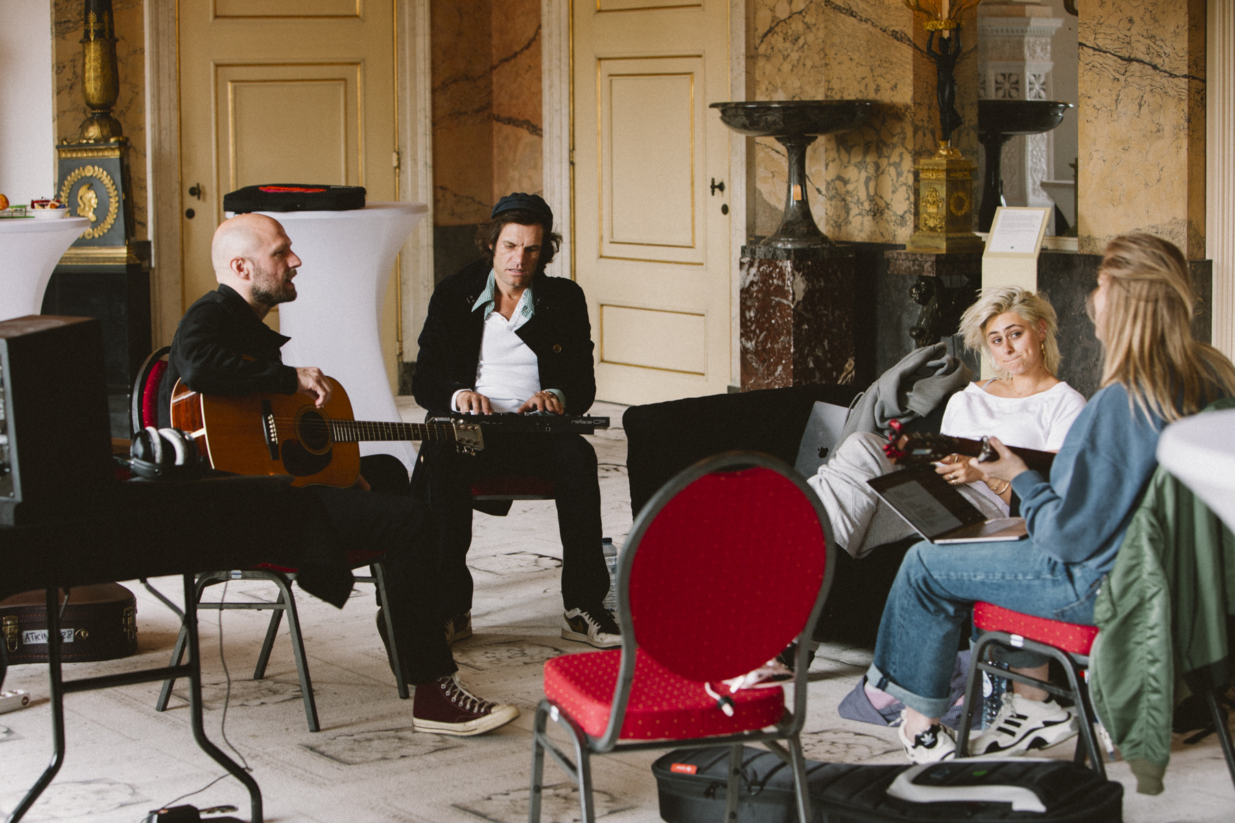 Een dag volledig in het teken van creativiteit, inspiratie, en bovenal, het samenbrengen van muzikaal talent. Vier unieke, historische ruimtes in het Paleis werden omgetoverd tot creatieve schrijf- en opnameruimtes, waar de volgende componisten en artiesten samenwerkten aan gloednieuwe songs: Bente, Deniz “Freez” Wittebol, Gerben van der Mooren, Hannah Mae, Ilse DeLange, Jana Mila, JP Hoekstra, MAKSIM, Matthijs “Duijf” van Duijvenbode, Melle Boddaert, Simon Gitsels en Will Knox.
